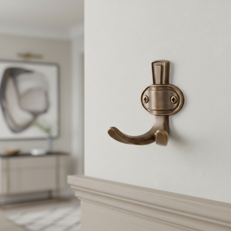Prevedenie v antik medi dodáva vešiaku výrazný historický charakter s jemnou patinou, ktorý krásne ladí s drevom a rustikálnymi prvkami.