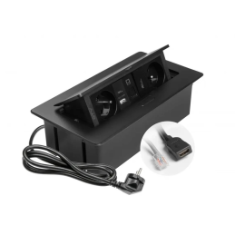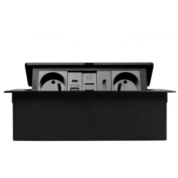 Moderná a ergonomická výklopná elektrická zásuvka určená na montáž do pracovného stola, kuchynskej dosky alebo kancelárskeho nábytku. Vďaka kombinácii silových, nabíjacích a dátových portov je ideálna aj do kancelárií, domácich pracovní, open-space pracovísk či konferenčných stolov.