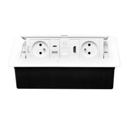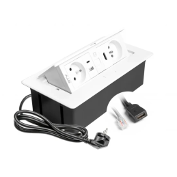 Moderná a ergonomická výklopná elektrická zásuvka určená na montáž do pracovného stola, kuchynskej dosky alebo kancelárskeho nábytku. Vďaka kombinácii silových, nabíjacích a dátových portov je ideálnym riešením pre kancelárie, domáce pracovne aj open-space priestory.