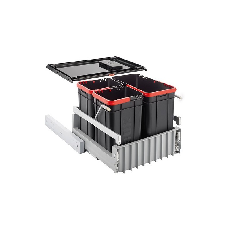Systém je vybavený košom s troma nádobami a policou nad nimi, ktorá je súčasťou balenia. Polica obsahuje aktívny uhlíkový filter, ktorý účinne neutralizuje neprijemné pachy, takže vaša kuchyňa zostane vždy svieža a čistá.