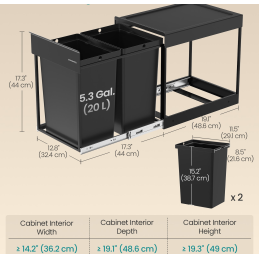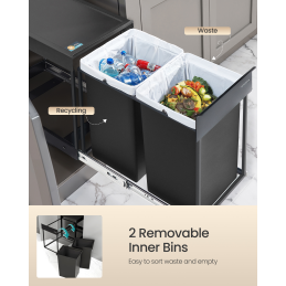 Systém obsahuje 2 vyberateľné vnútorné nádoby s objemom 20 L, ktoré umožňujú jednoduché triedenie odpadu (napr. komunálny odpad a plast/papier).