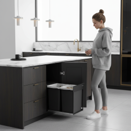 108Vstavaný odpadkový systém GALANT predstavuje praktické a elegantné riešenie pre moderné kuchyne. Umožňuje efektívne triedenie odpadu priamo v skrinke, šetrí priestor a zároveň udržiava kuchyňu vizuálne čistú a bez nepríjemných pachov.