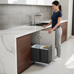 Kôš je určený na montáž do spodnej kuchynskej skrinky, kde zostáva diskrétne ukrytý.