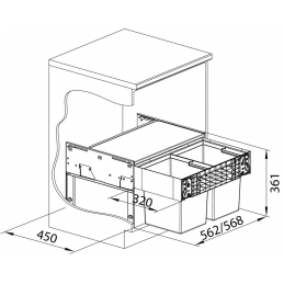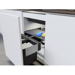 Stabilná konštrukcia z kvalitného hliníka a plastu je uložená na výsuvných koľajničkách pre plynulý a tichý chod v skrinkách so 60 cm výsuvným čelom (bez pántov).