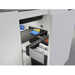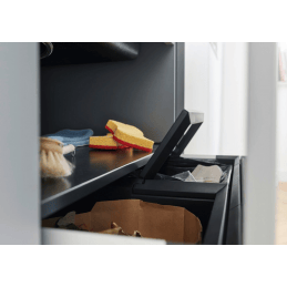 Pri úplnom zasunutí sa nádoby uzatvoria a priestor zostáva čistý a chránený pred pachmi. Výhodou je aj rýchla montáž rámu bez zdĺhavého vyznačovania a predvŕtavania.