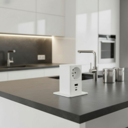Elegantná a praktická výsuvná zásuvka v modernom bielom matnom prevedení. Je vybavená francúzskou koncovkou (typ E), ktorá je kompatibilná so Slovenským, Českým, Francúzskym aj Poľským trhom. Ideálne riešenie pre kuchyne, pracovné stoly aj kancelárie – tam, kde potrebujete mať zásuvku po ruke, no nechcete narušiť čistý vzhľad pracovnej plochy.